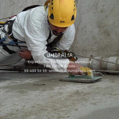 Primerament es va procedir a muntar les instal·lacions de treball vertical (capçalera, punts d’ancoratge, desviaments, etc.) per tal de poder accedir a tots els racons del pati. Posteriorment es van muntar totes les proteccions col·lectives necessàries per impedir fer malbé cap element durant el transcurs de les obres.